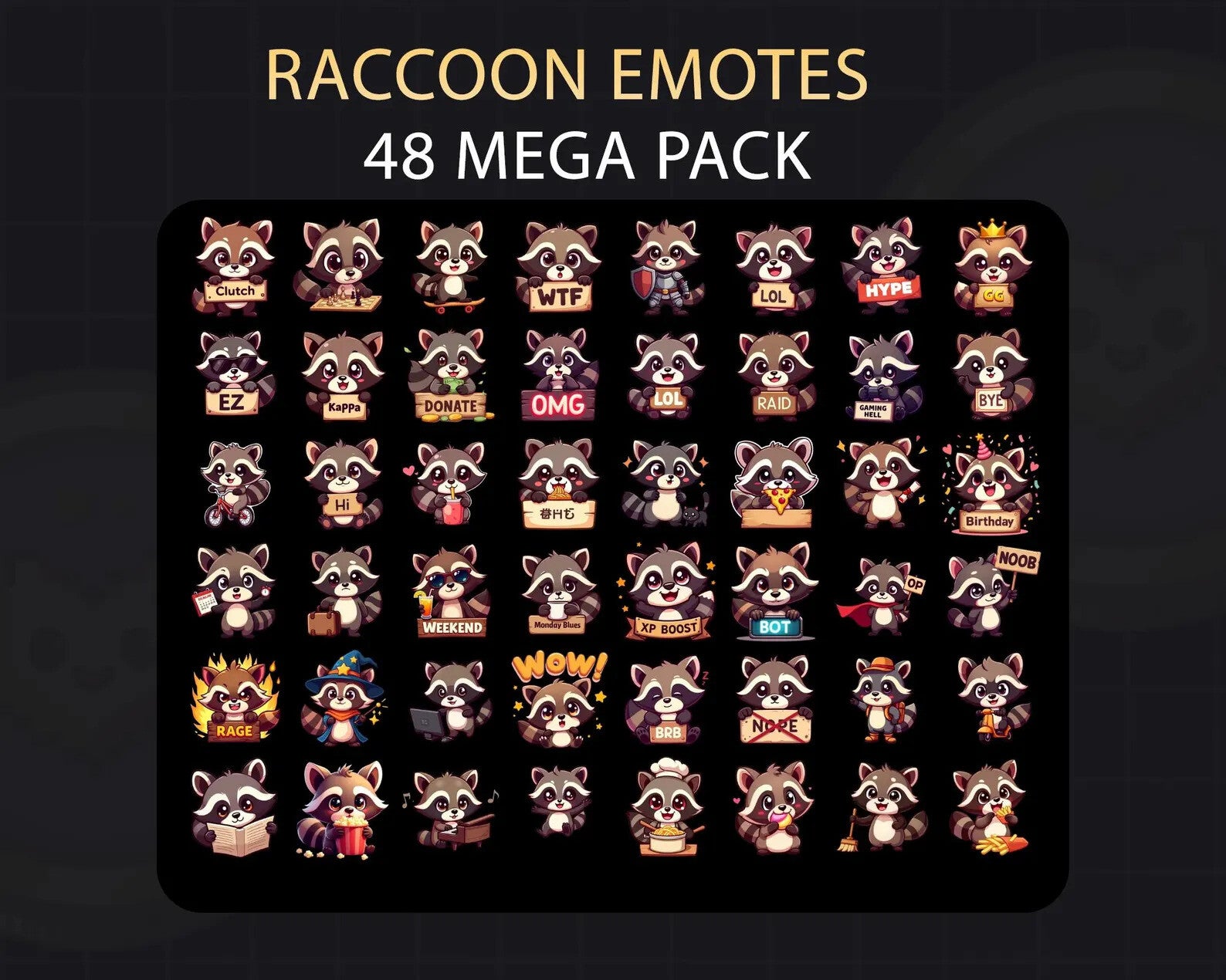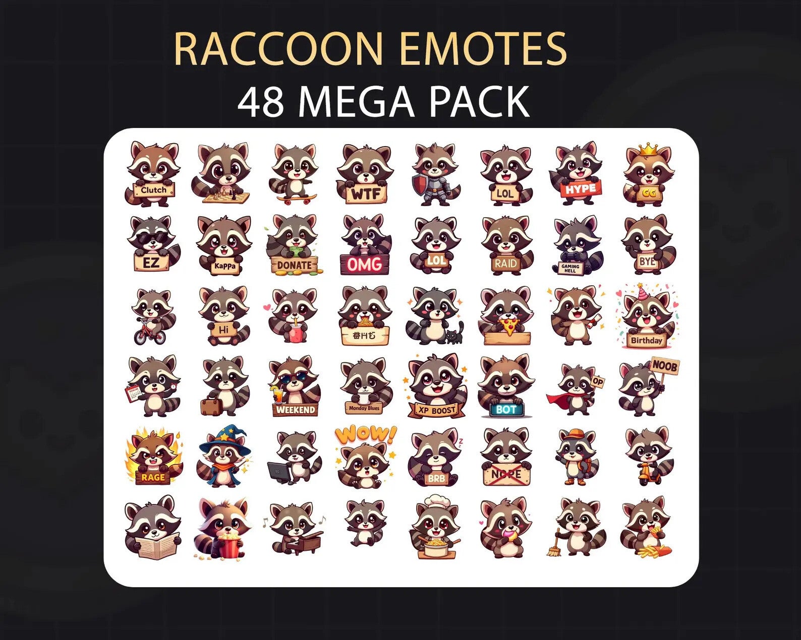 48 Raccoon Mega Pack + 19 Bonus Emotes